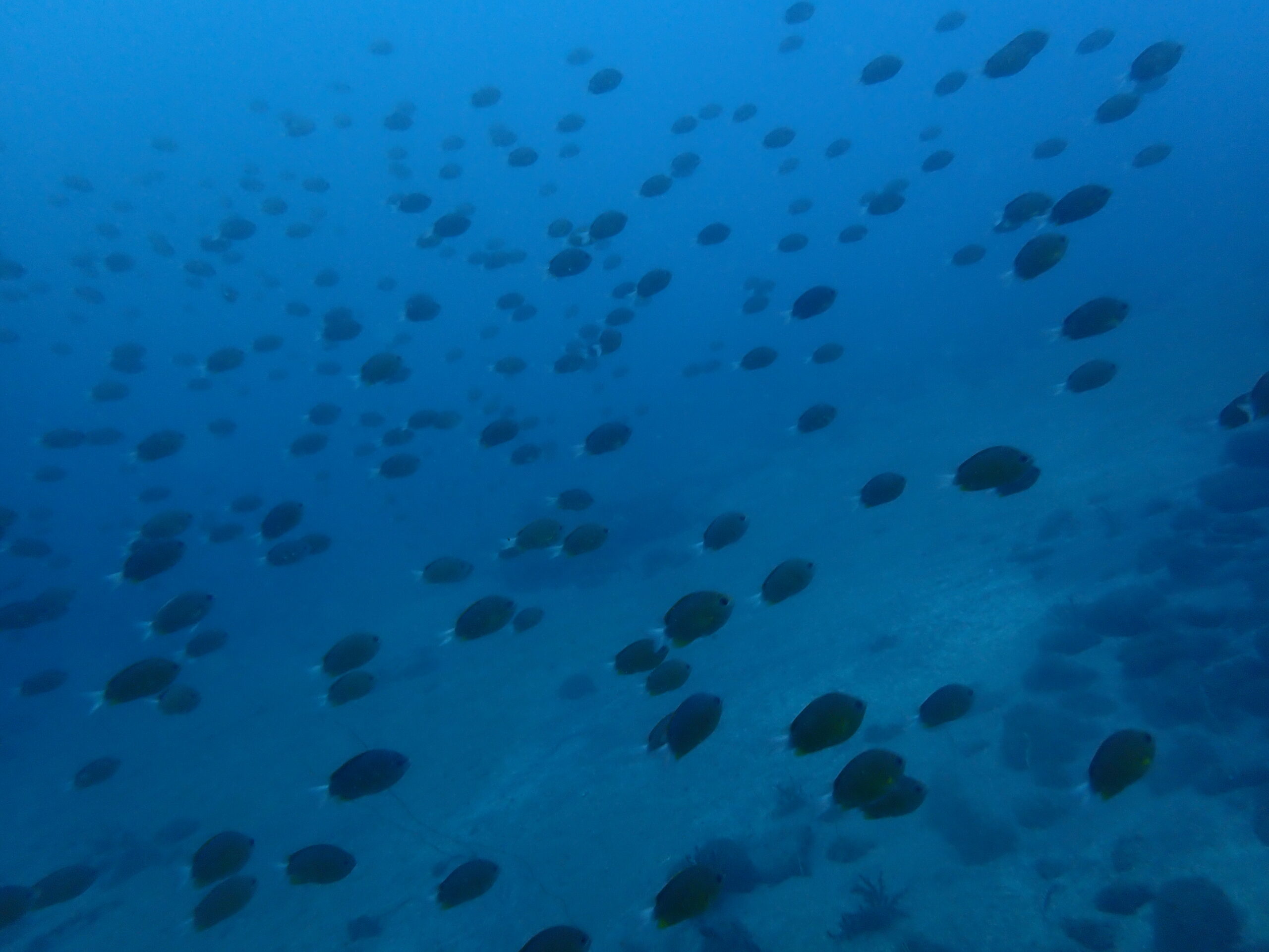 のんびり潜っているとスズメダイの群れに遭遇。