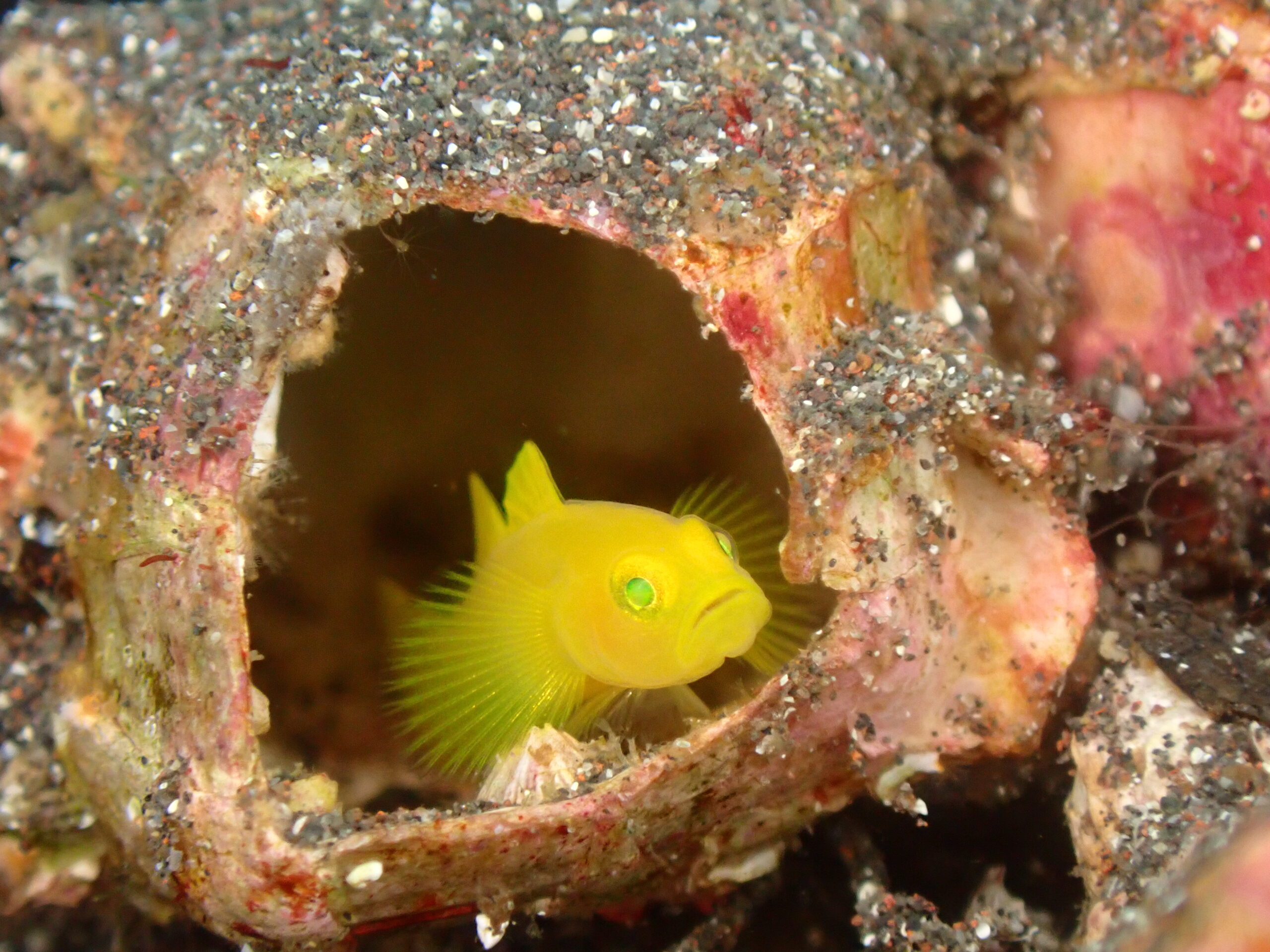 久々の登場のミジンベニハゼでーす!落ちたフジツボの中にいる自然のミジンベニハゼ…サイズもちょうど良くて可愛かったです!!